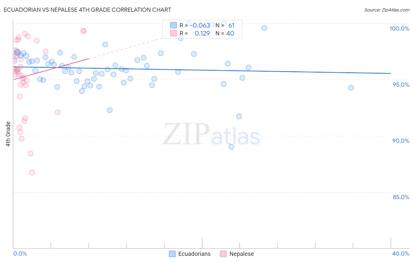 Ecuadorian vs Nepalese 4th Grade Correlation Chart