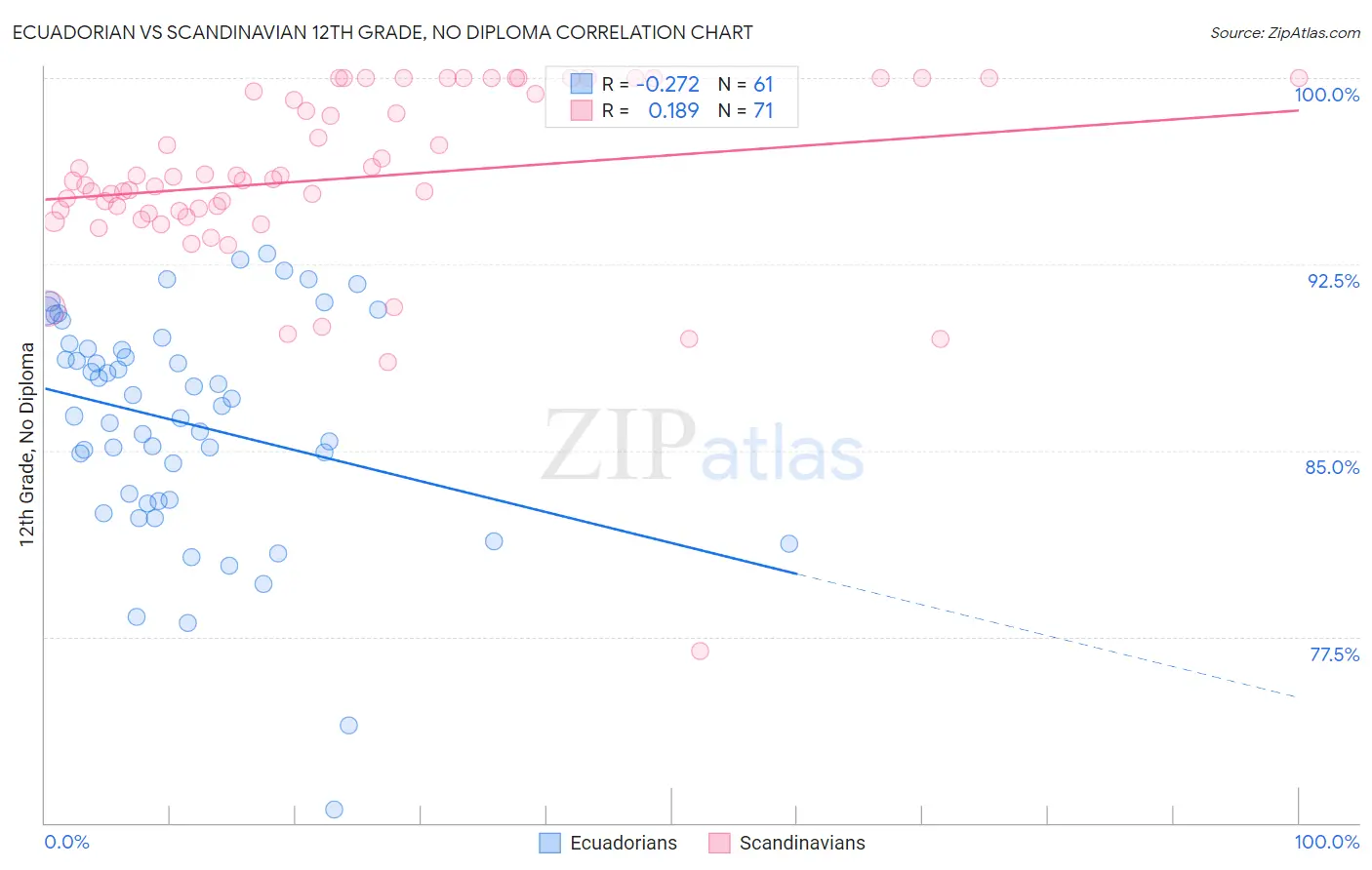 Ecuadorian vs Scandinavian 12th Grade, No Diploma Correlation Chart