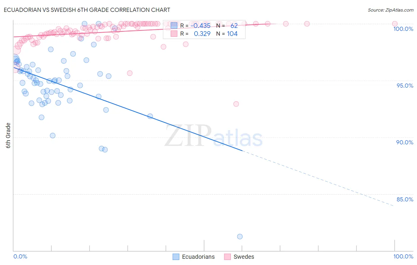 Ecuadorian vs Swedish 6th Grade Correlation Chart