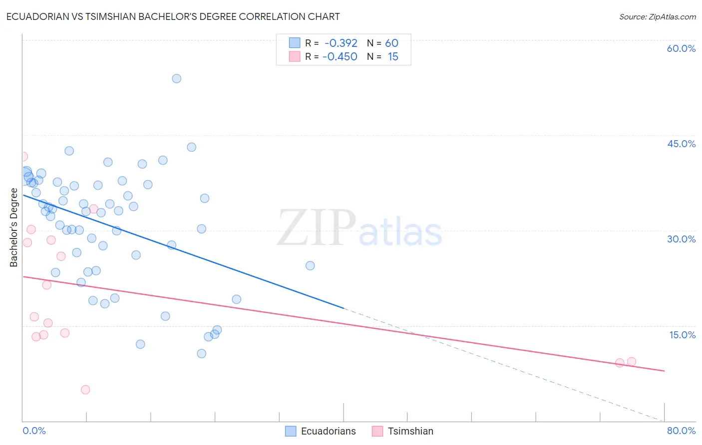 Ecuadorian vs Tsimshian Bachelor's Degree Correlation Chart