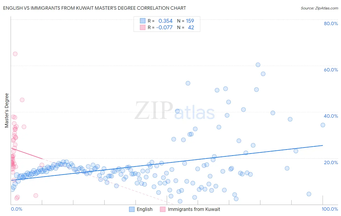 English vs Immigrants from Kuwait Master's Degree Correlation Chart