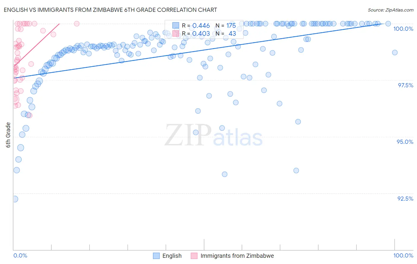 English vs Immigrants from Zimbabwe 6th Grade Correlation Chart