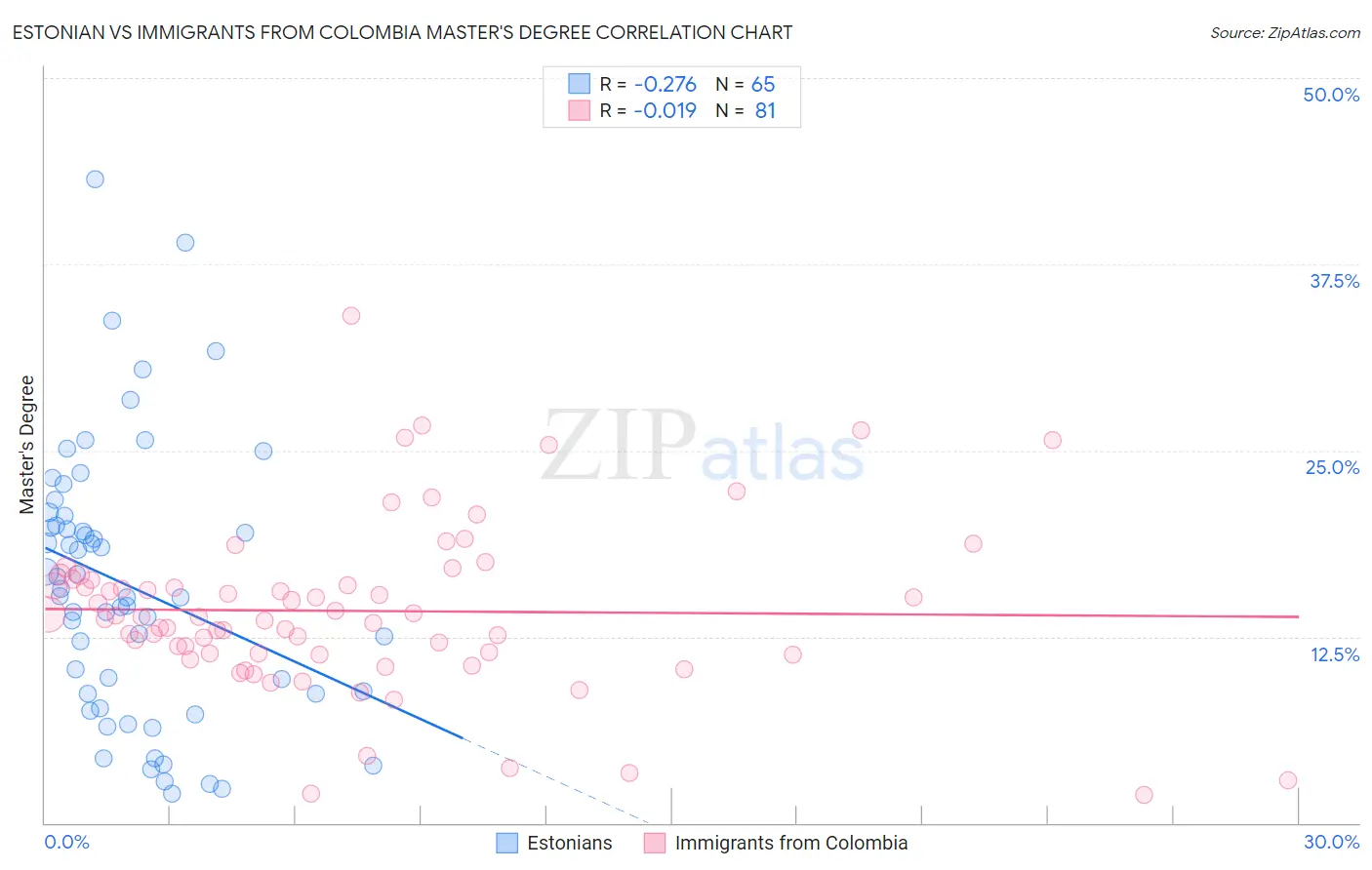 Estonian vs Immigrants from Colombia Master's Degree Correlation Chart