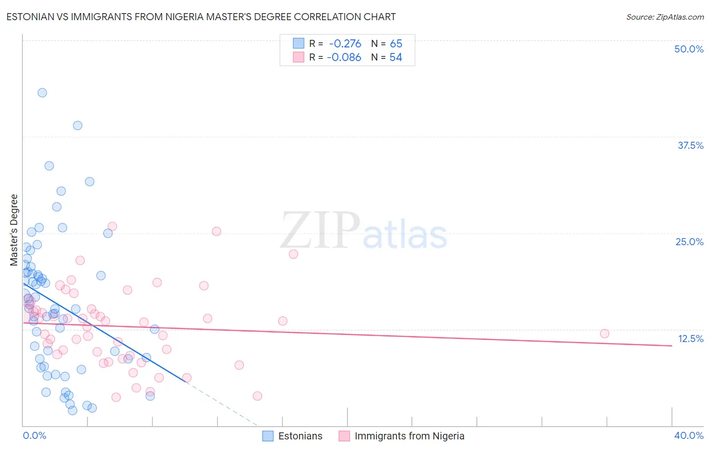 Estonian vs Immigrants from Nigeria Master's Degree Correlation Chart