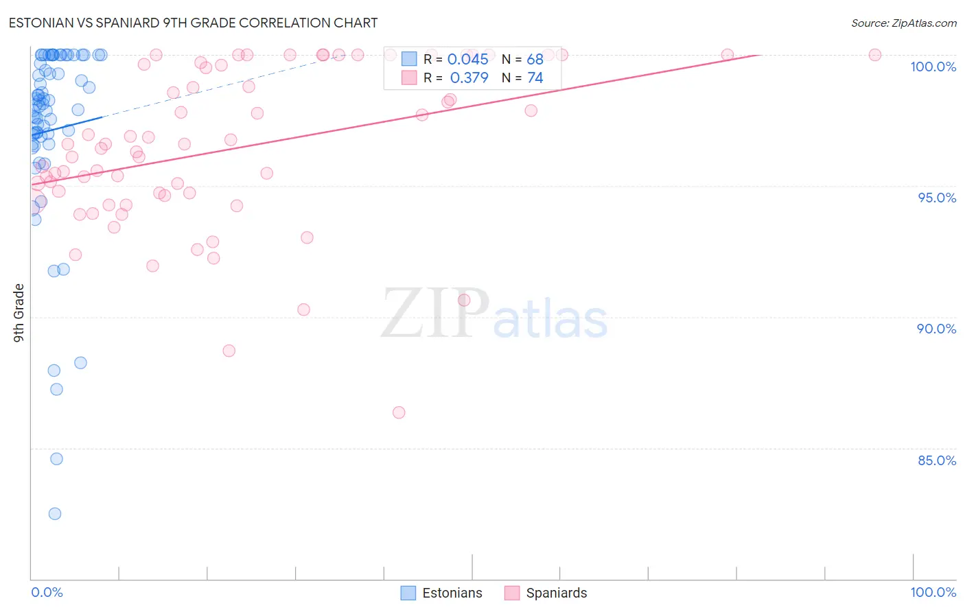 Estonian vs Spaniard 9th Grade Correlation Chart