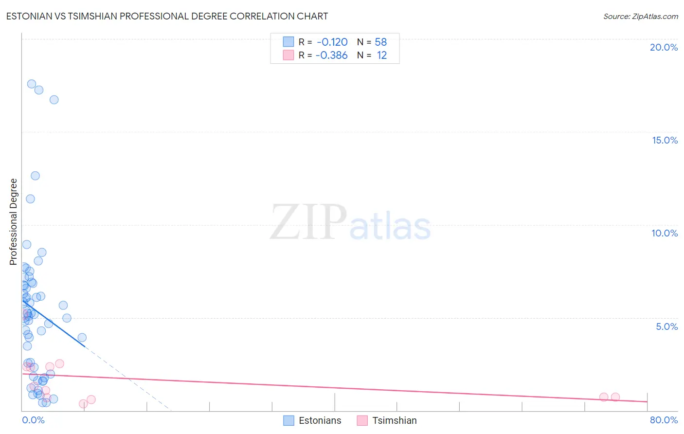 Estonian vs Tsimshian Professional Degree Correlation Chart