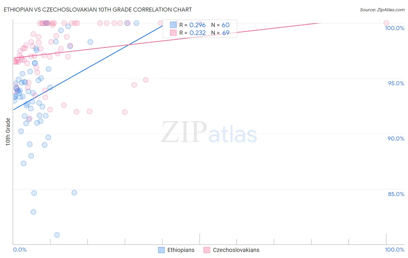 Ethiopian vs Czechoslovakian 10th Grade Correlation Chart