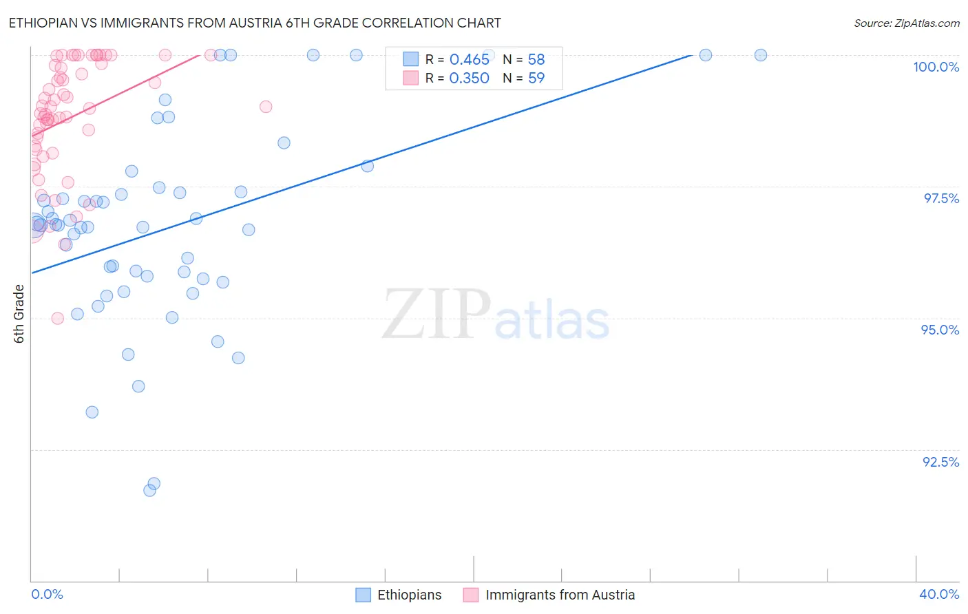 Ethiopian vs Immigrants from Austria 6th Grade Correlation Chart