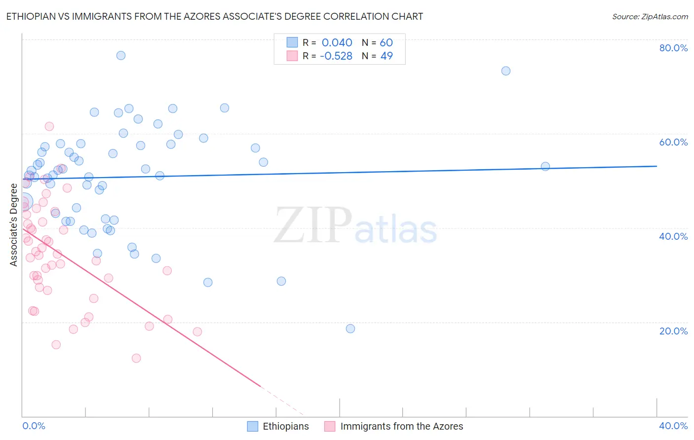 Ethiopian vs Immigrants from the Azores Associate's Degree Correlation Chart