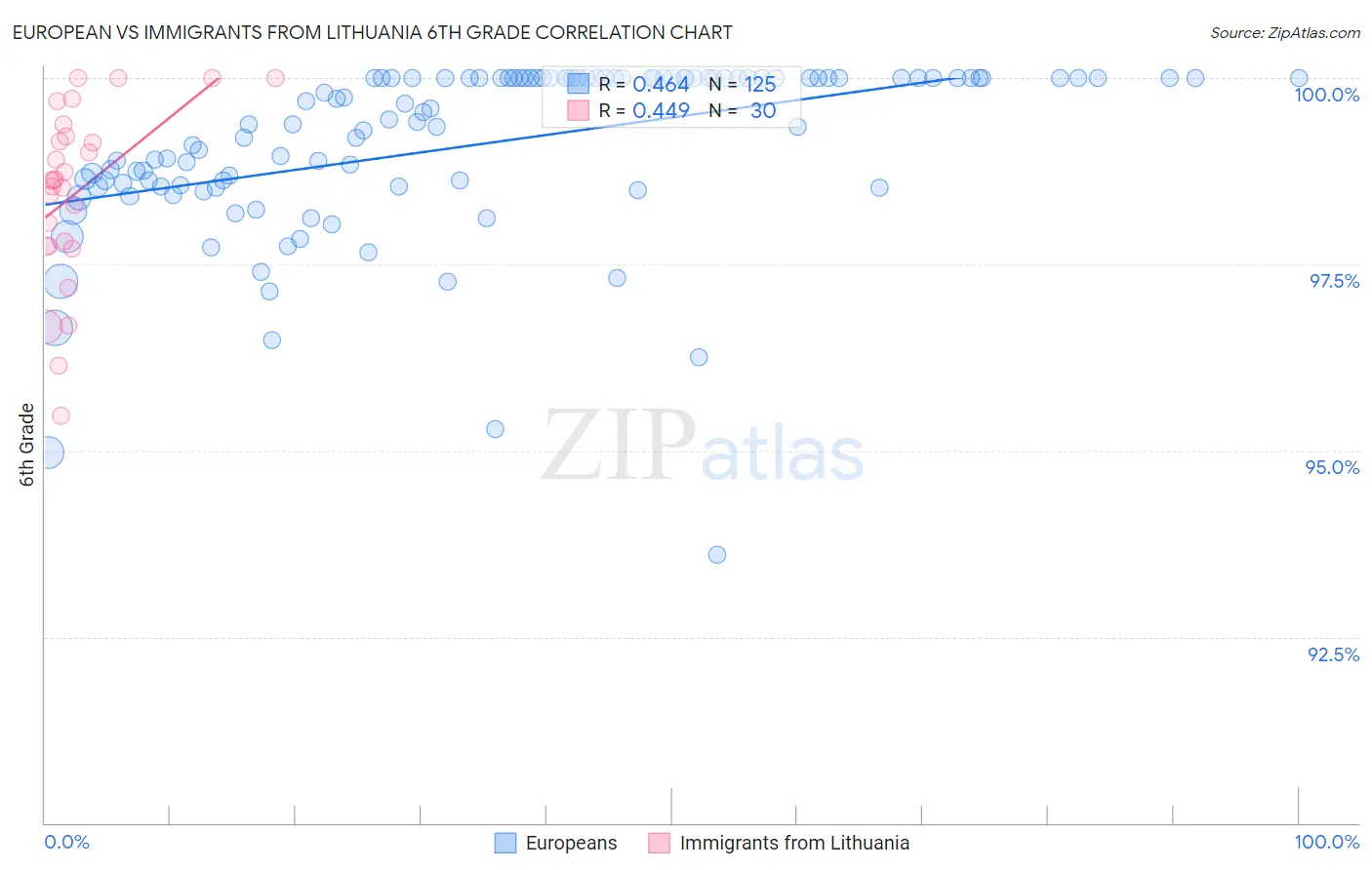 European vs Immigrants from Lithuania 6th Grade Correlation Chart
