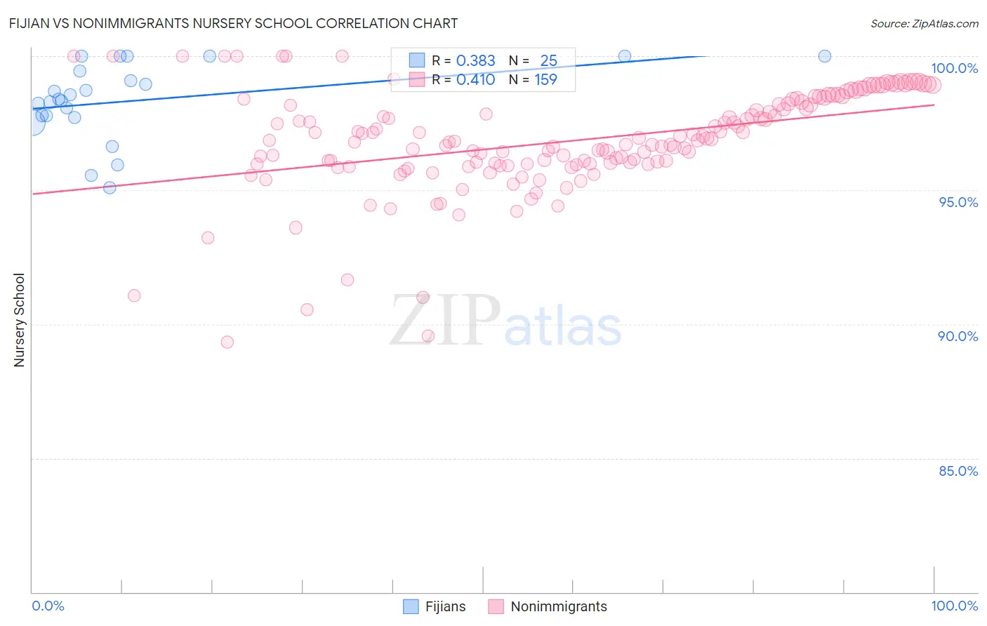 Fijian vs Nonimmigrants Nursery School Correlation Chart