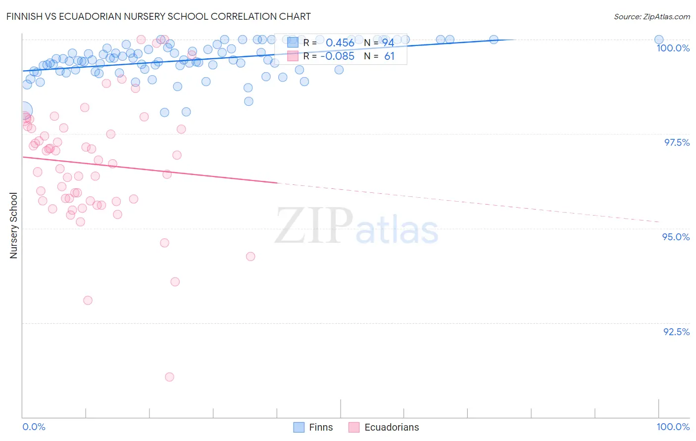 Finnish vs Ecuadorian Nursery School Correlation Chart