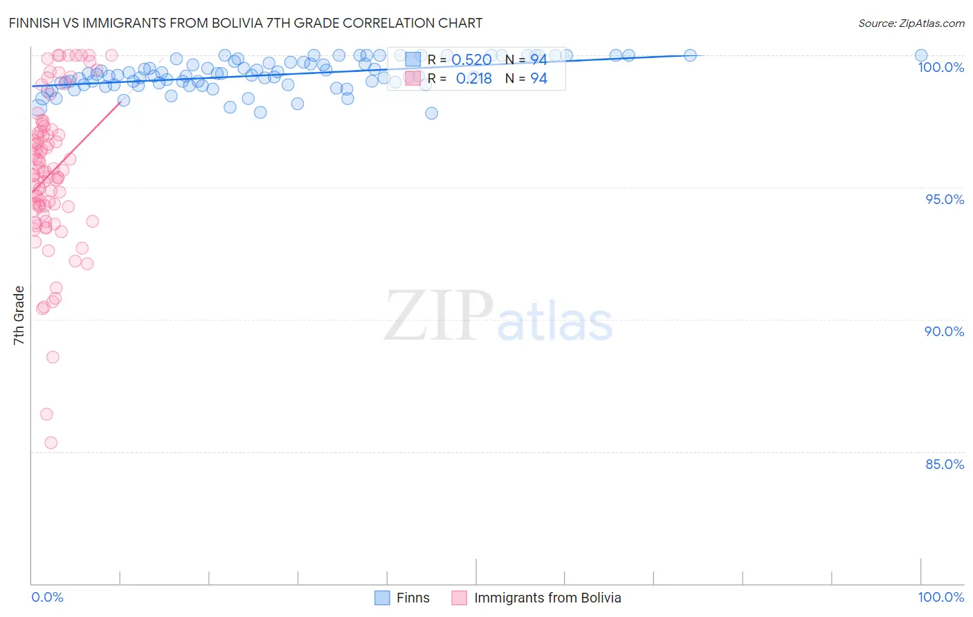 Finnish vs Immigrants from Bolivia 7th Grade Correlation Chart