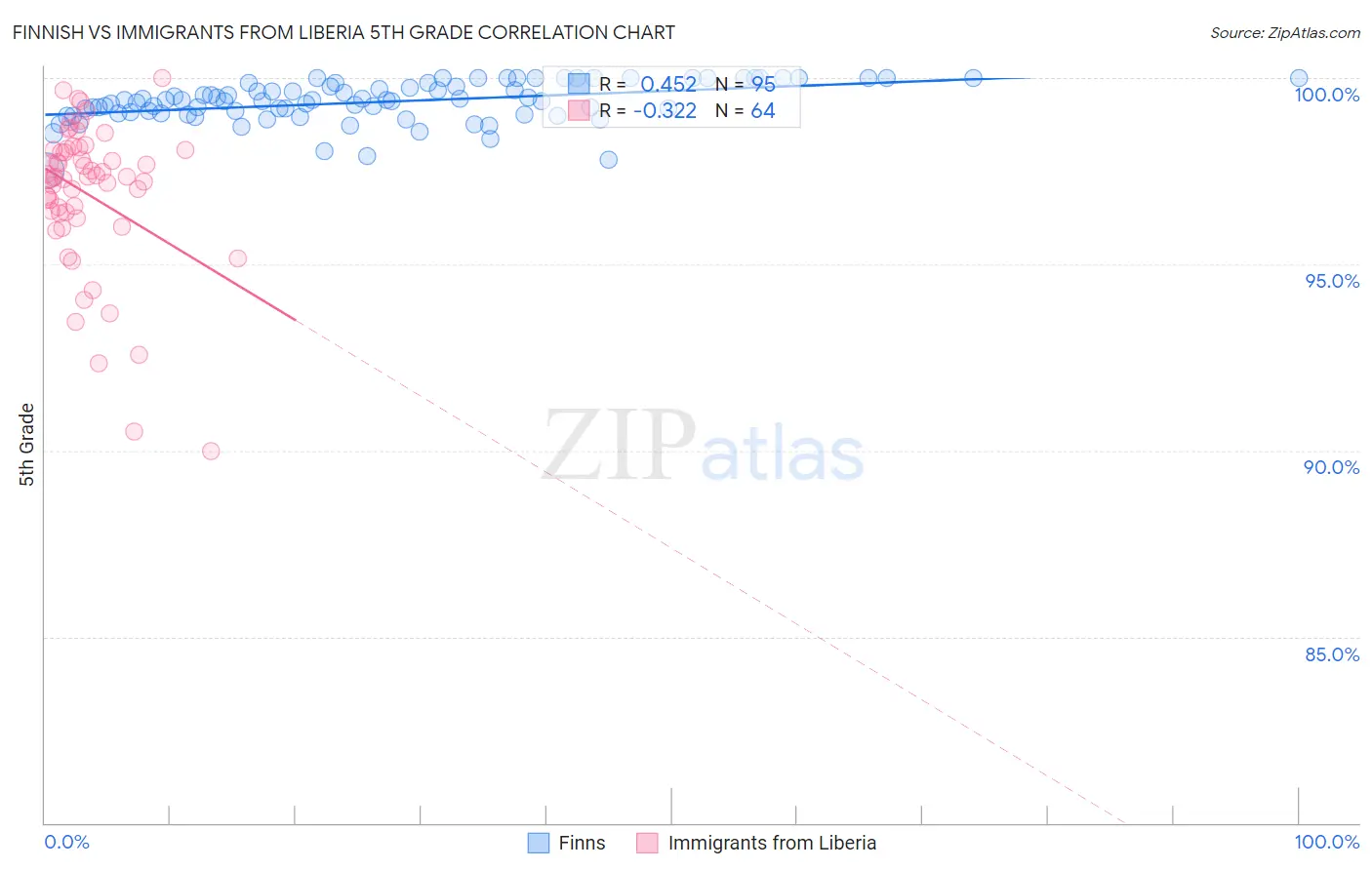 Finnish vs Immigrants from Liberia 5th Grade Correlation Chart