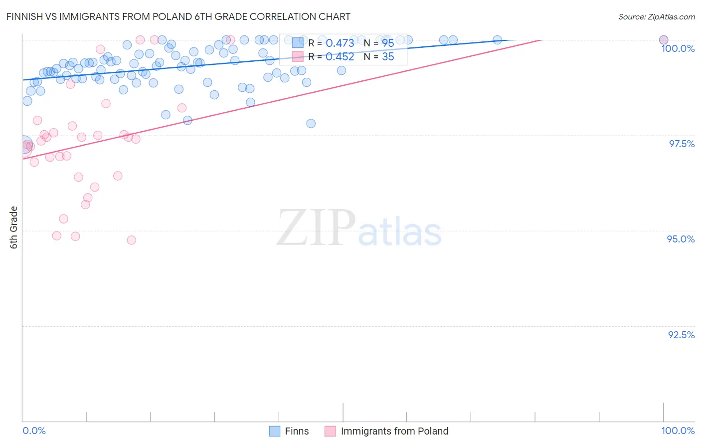 Finnish vs Immigrants from Poland 6th Grade Correlation Chart