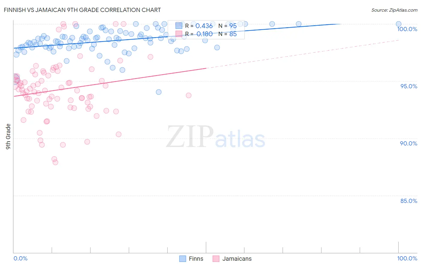 Finnish vs Jamaican 9th Grade Correlation Chart