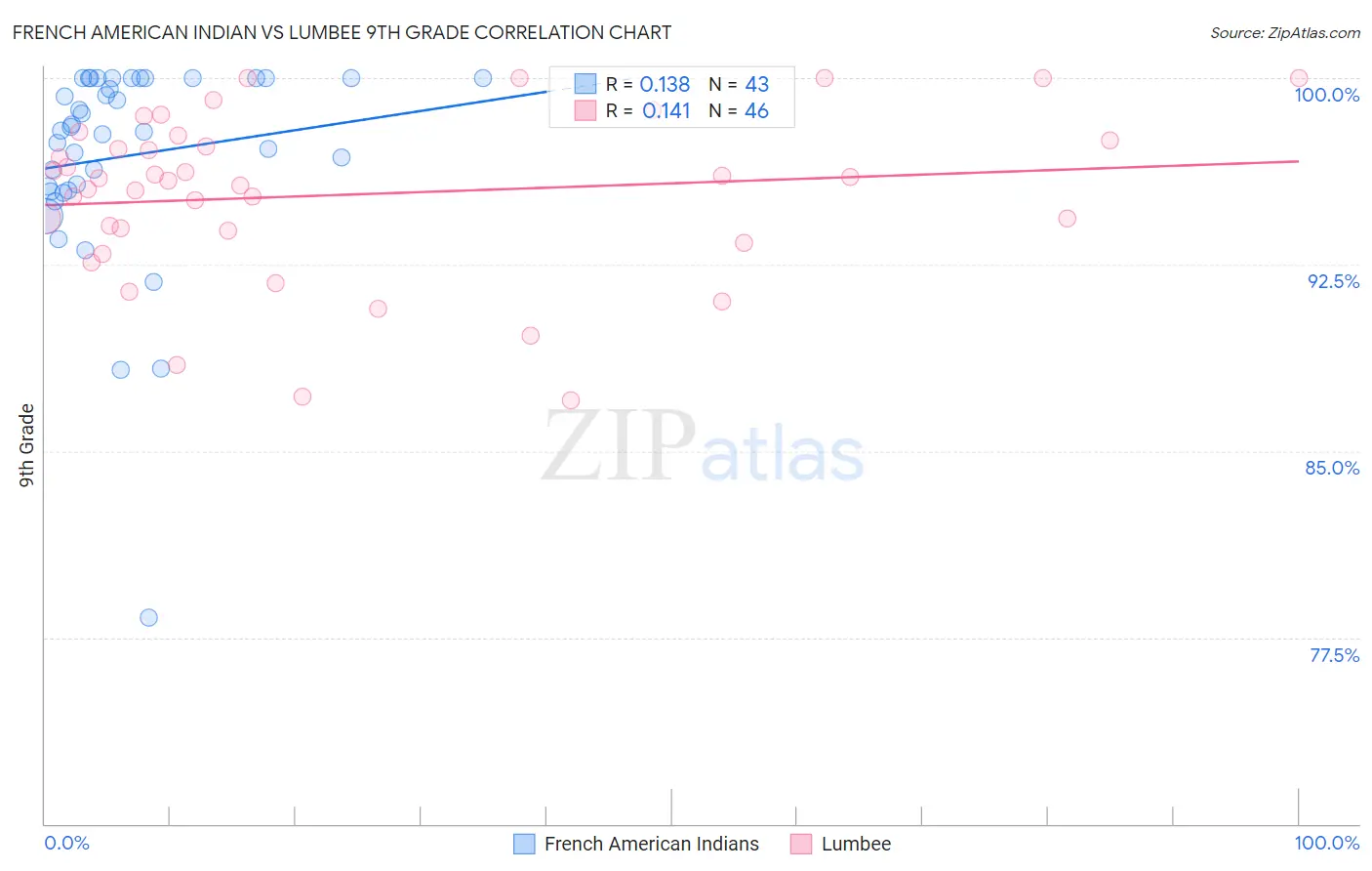 French American Indian vs Lumbee 9th Grade Correlation Chart