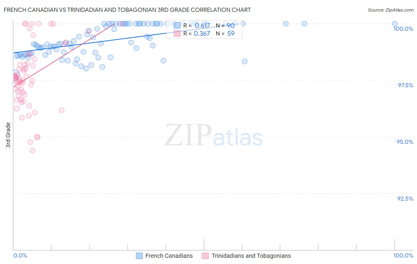 French Canadian vs Trinidadian and Tobagonian 3rd Grade Correlation Chart
