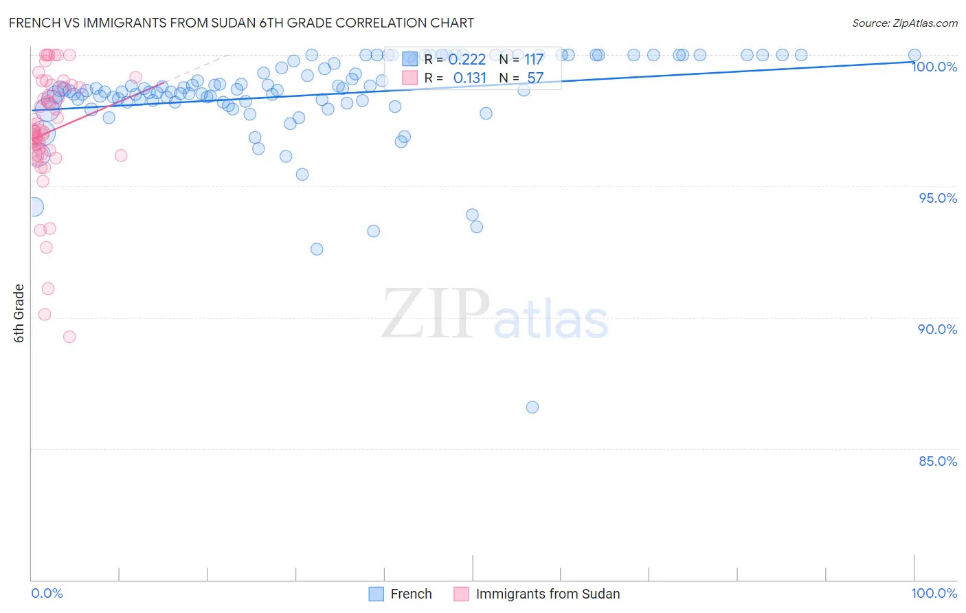French vs Immigrants from Sudan 6th Grade Correlation Chart