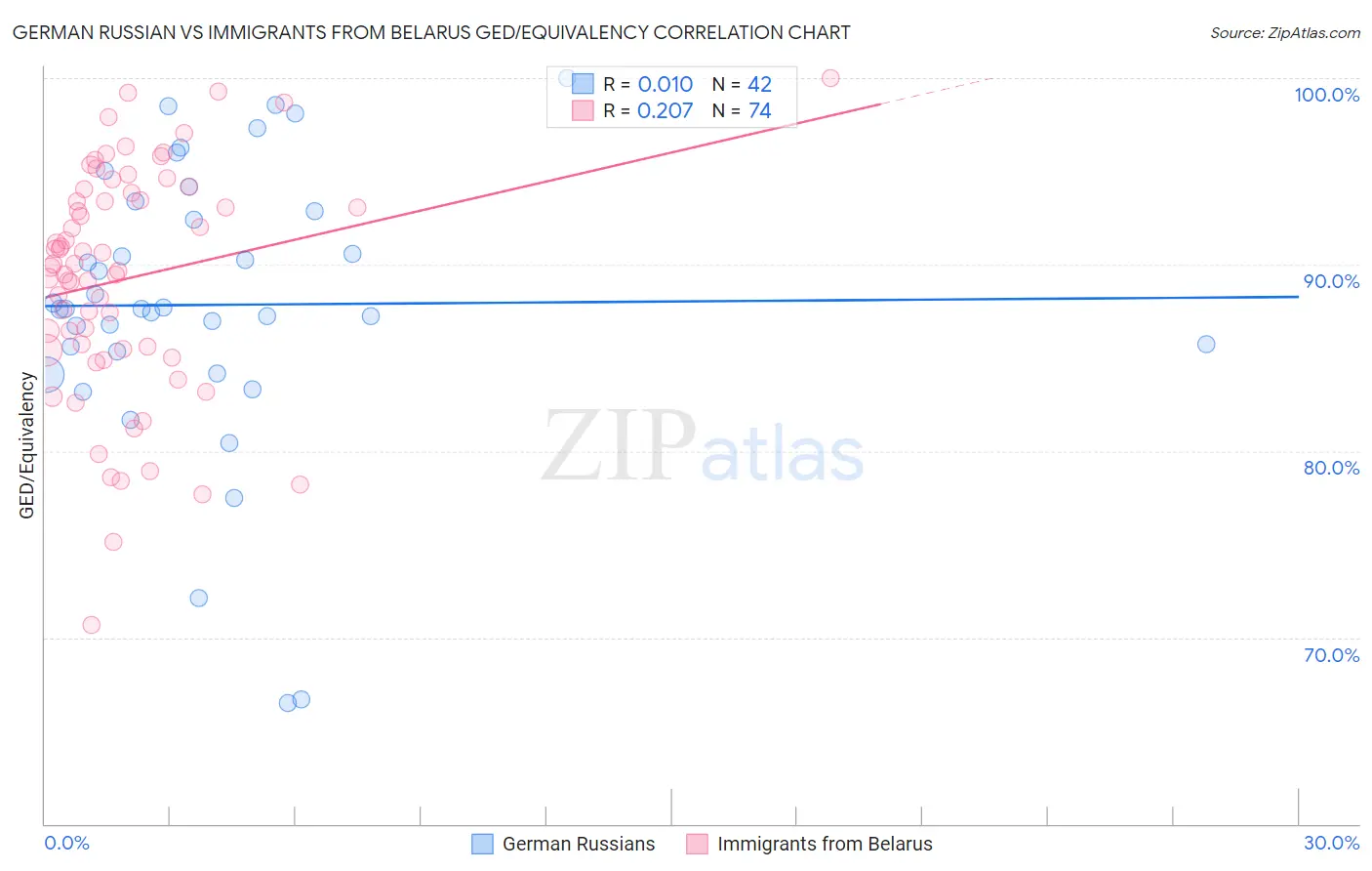German Russian vs Immigrants from Belarus GED/Equivalency Correlation Chart