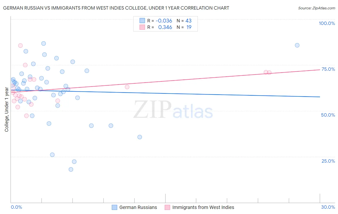 German Russian vs Immigrants from West Indies College, Under 1 year Correlation Chart