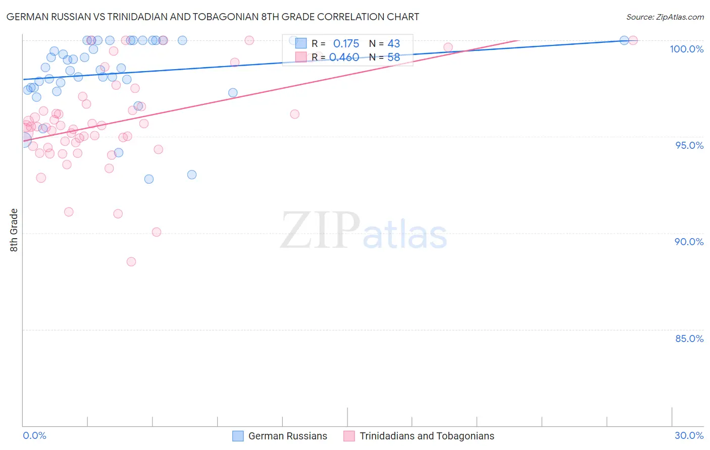 German Russian vs Trinidadian and Tobagonian 8th Grade Correlation Chart