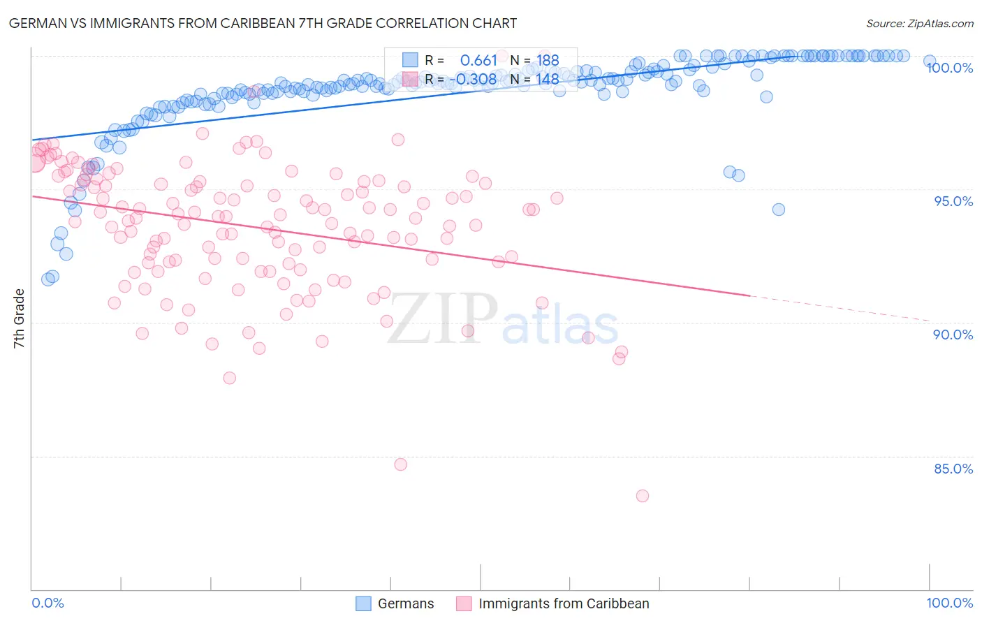 German vs Immigrants from Caribbean 7th Grade Correlation Chart
