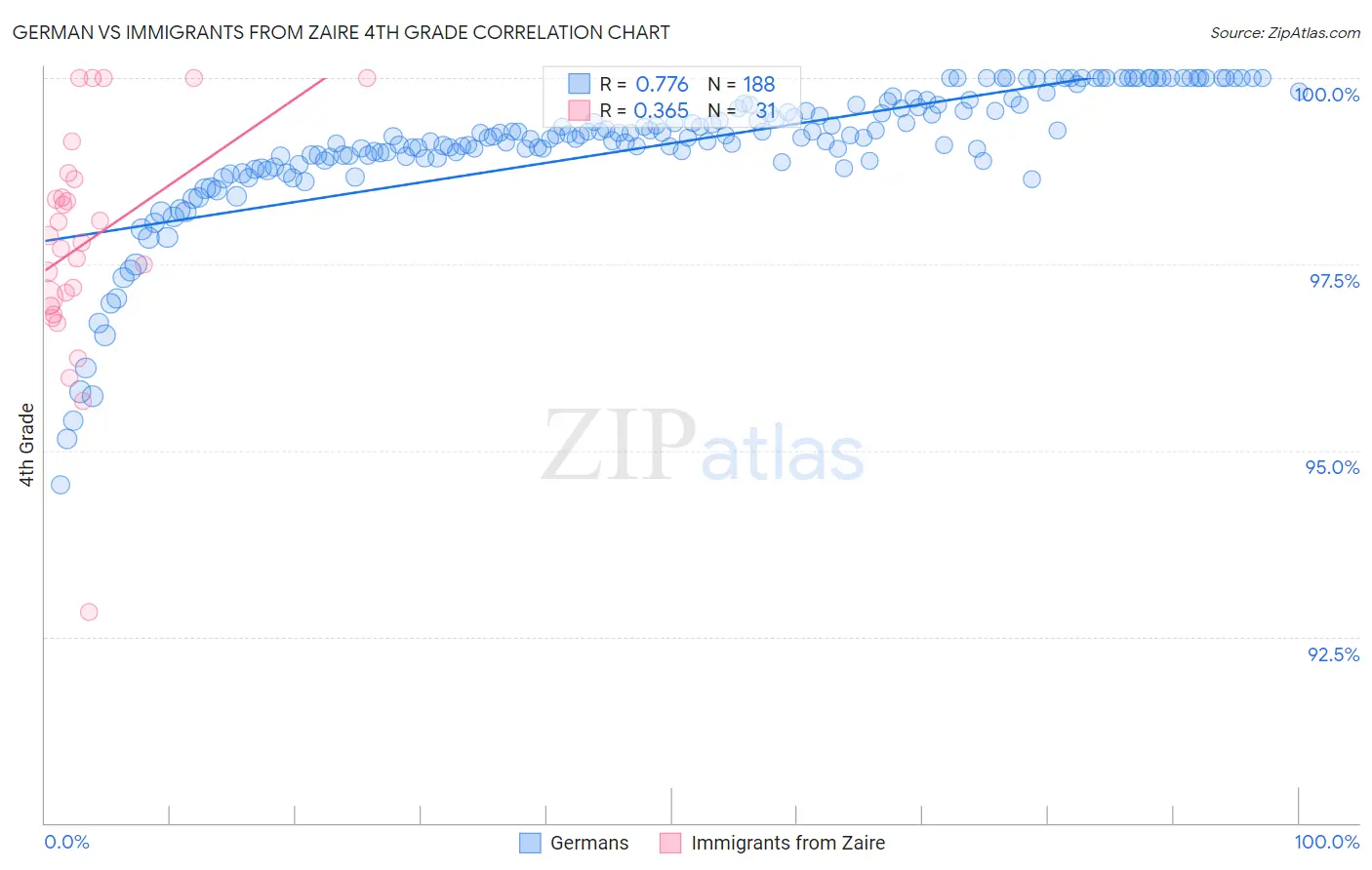 German vs Immigrants from Zaire 4th Grade Correlation Chart