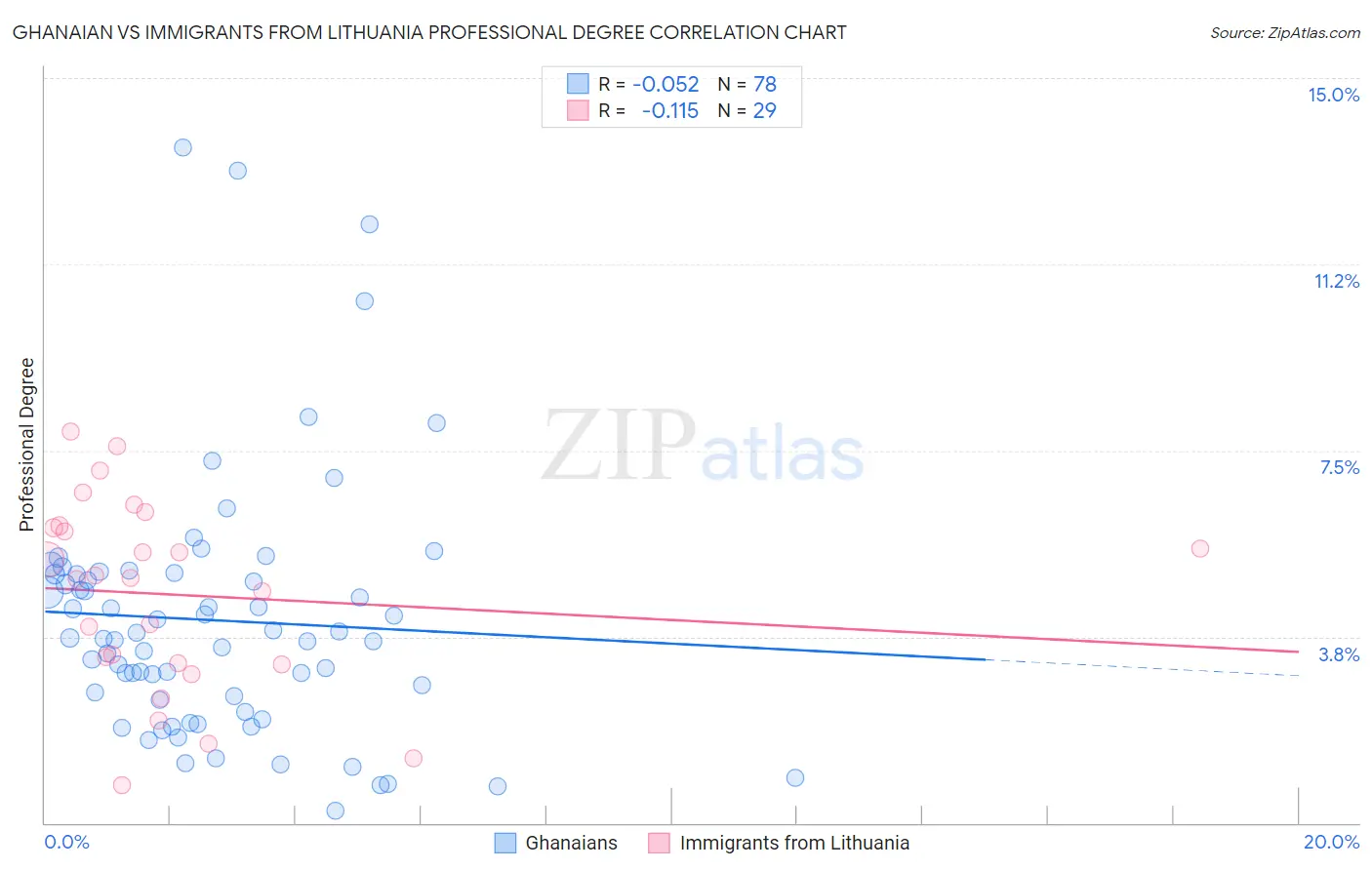 Ghanaian vs Immigrants from Lithuania Professional Degree Correlation Chart