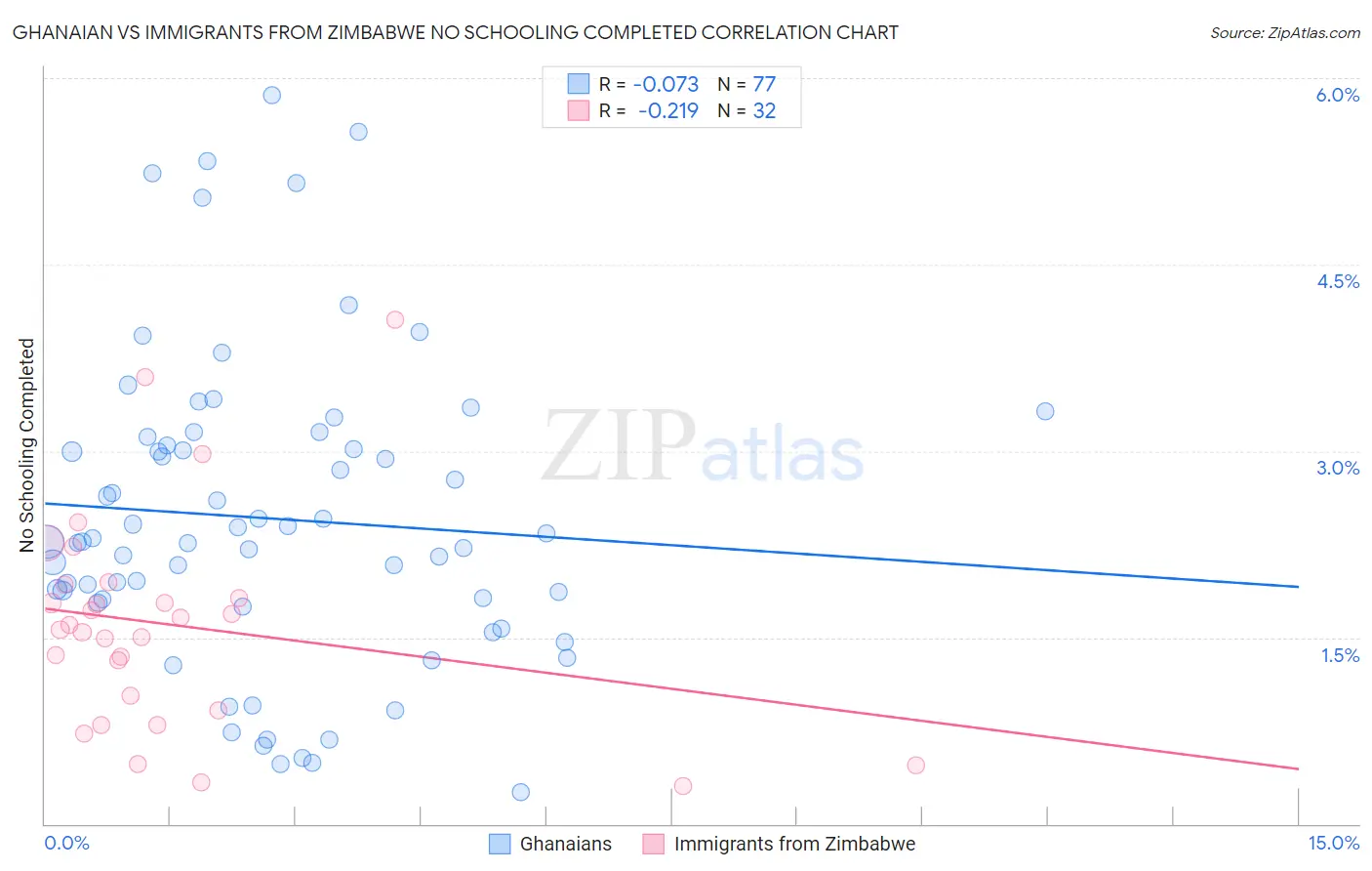 Ghanaian vs Immigrants from Zimbabwe No Schooling Completed Correlation Chart