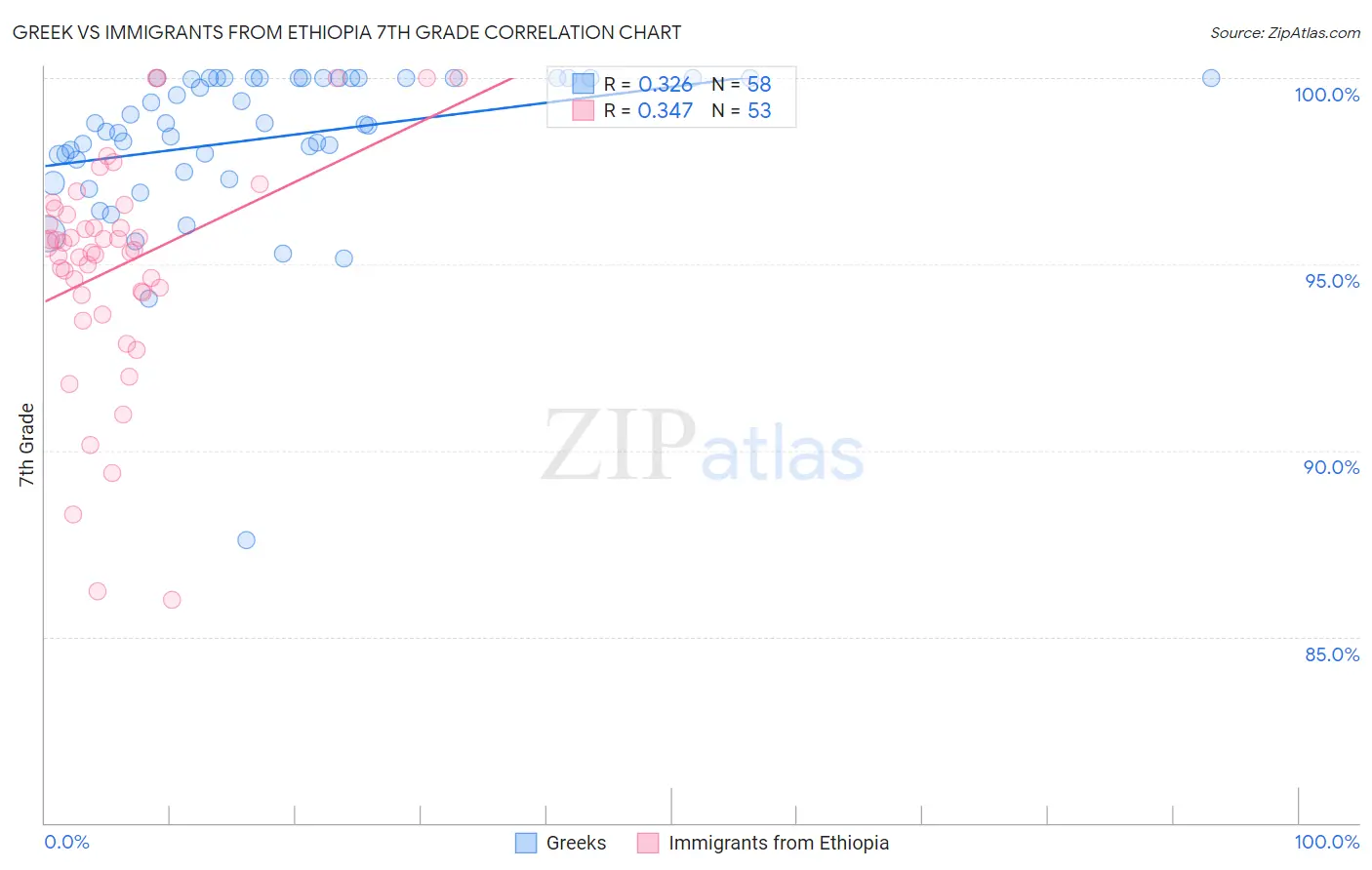 Greek vs Immigrants from Ethiopia 7th Grade Correlation Chart