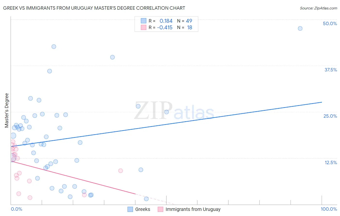 Greek vs Immigrants from Uruguay Master's Degree Correlation Chart
