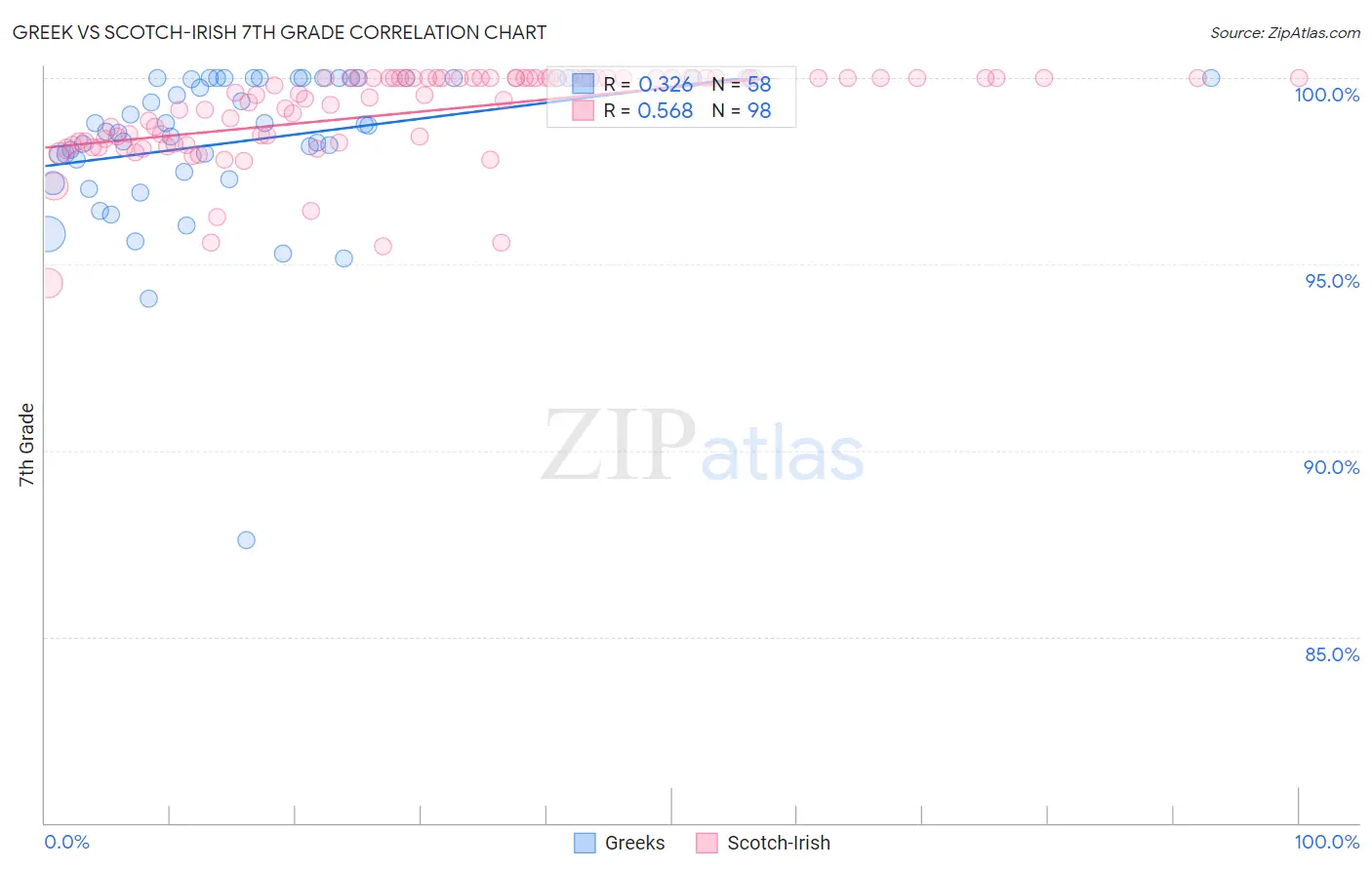 Greek vs Scotch-Irish 7th Grade Correlation Chart