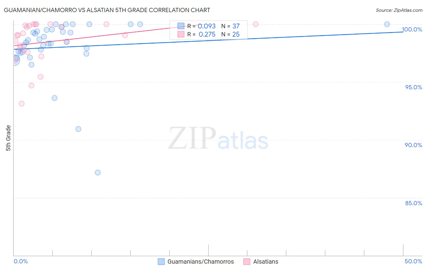 Guamanian/Chamorro vs Alsatian 5th Grade Correlation Chart