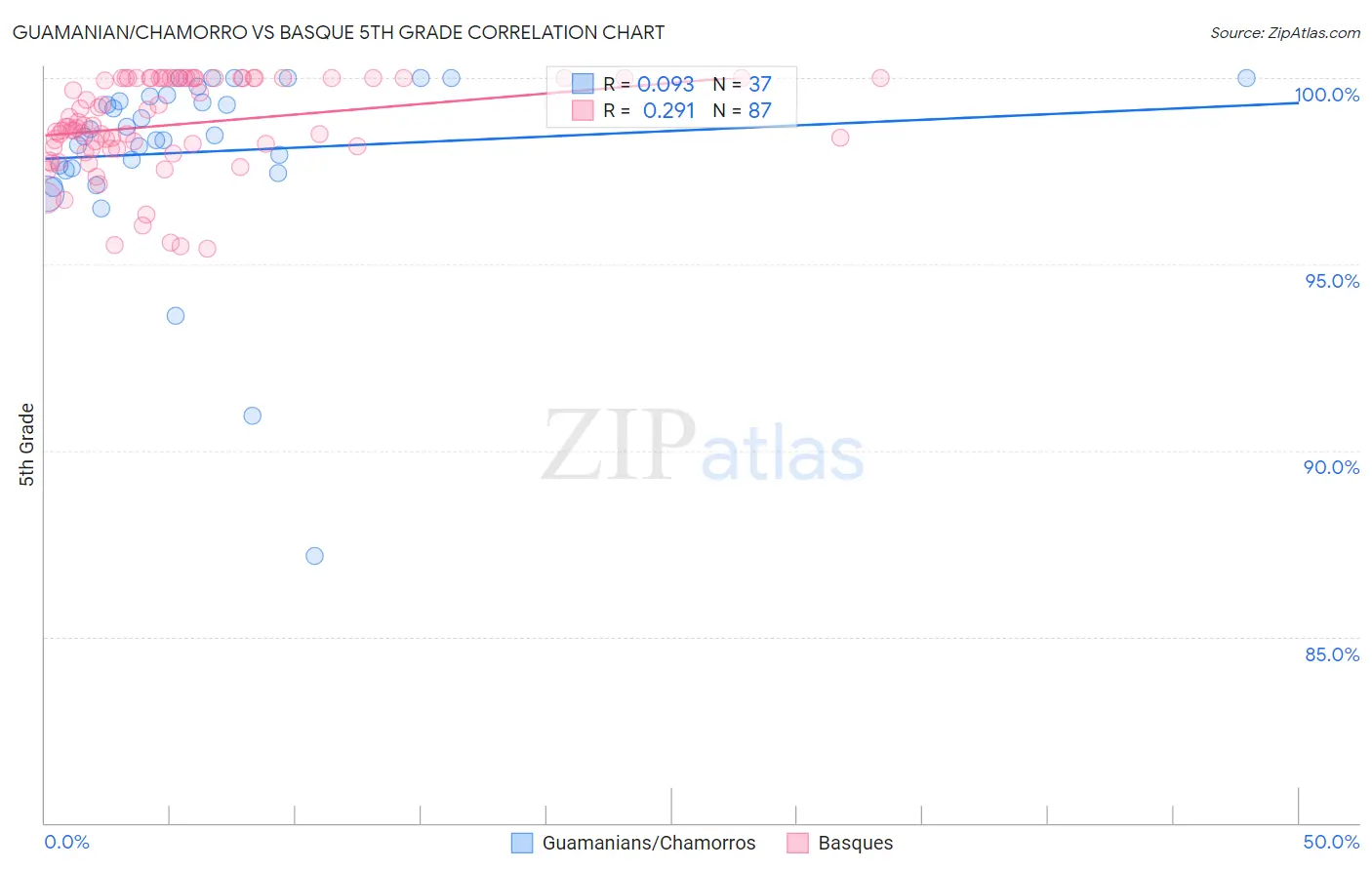Guamanian/Chamorro vs Basque 5th Grade Correlation Chart
