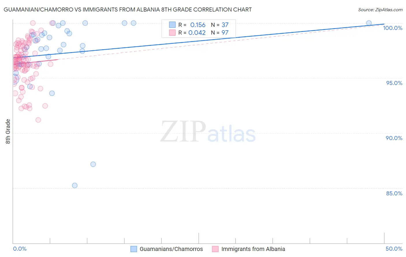 Guamanian/Chamorro vs Immigrants from Albania 8th Grade Correlation Chart