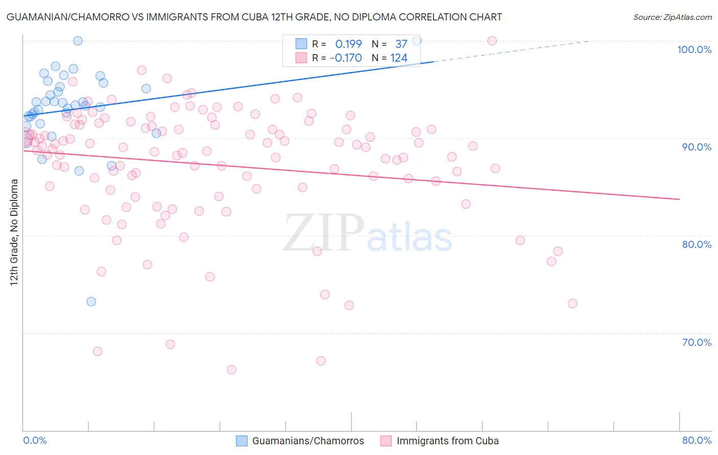 Guamanian/Chamorro vs Immigrants from Cuba 12th Grade, No Diploma Correlation Chart