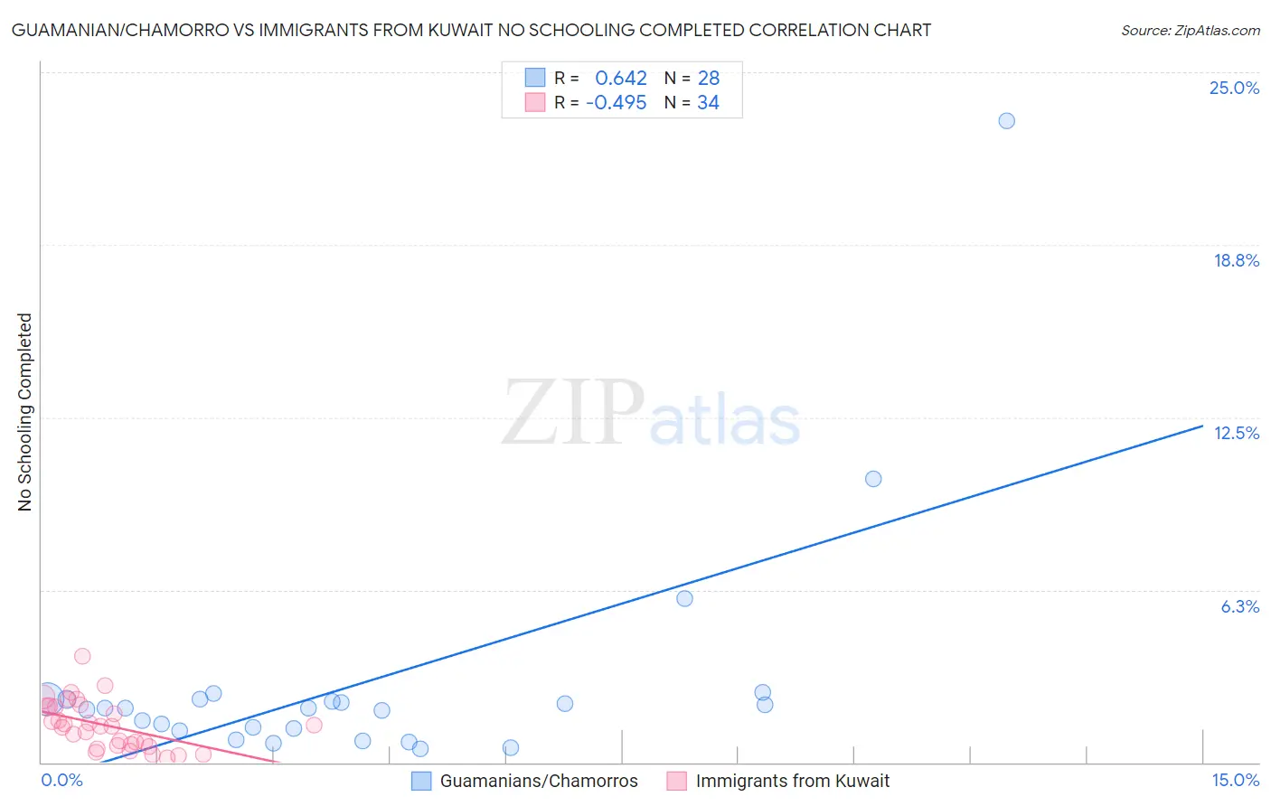 Guamanian/Chamorro vs Immigrants from Kuwait No Schooling Completed Correlation Chart