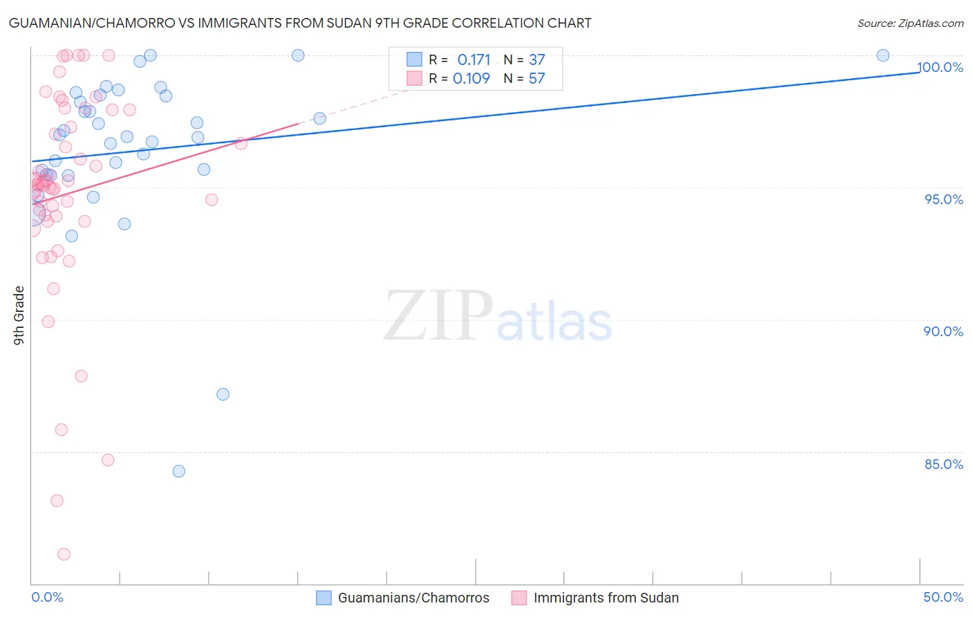 Guamanian/Chamorro vs Immigrants from Sudan 9th Grade Correlation Chart