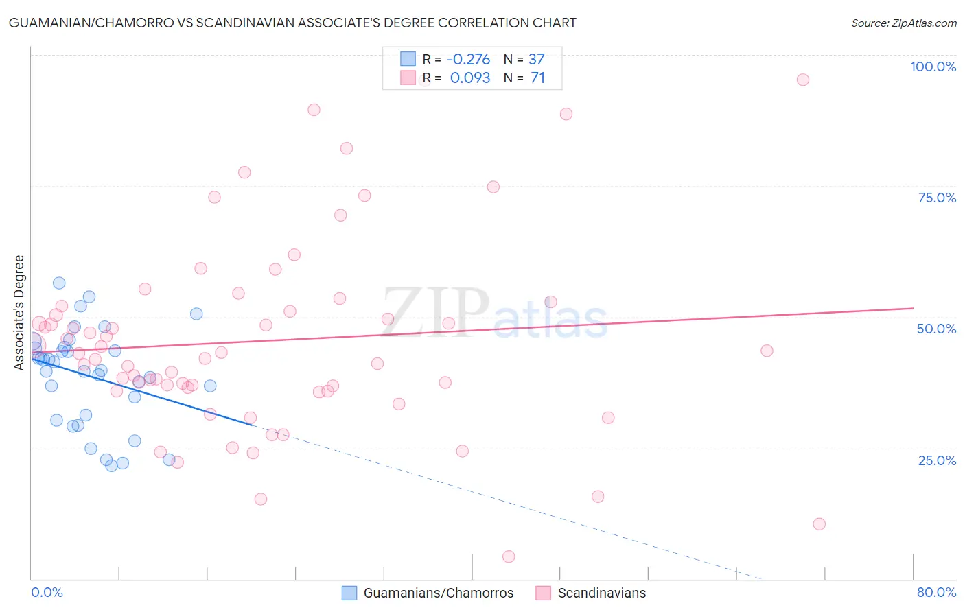 Guamanian/Chamorro vs Scandinavian Associate's Degree Correlation Chart