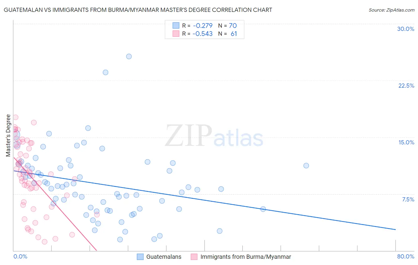 Guatemalan vs Immigrants from Burma/Myanmar Master's Degree Correlation Chart