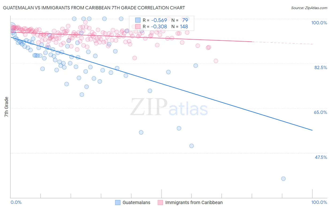Guatemalan vs Immigrants from Caribbean 7th Grade Correlation Chart
