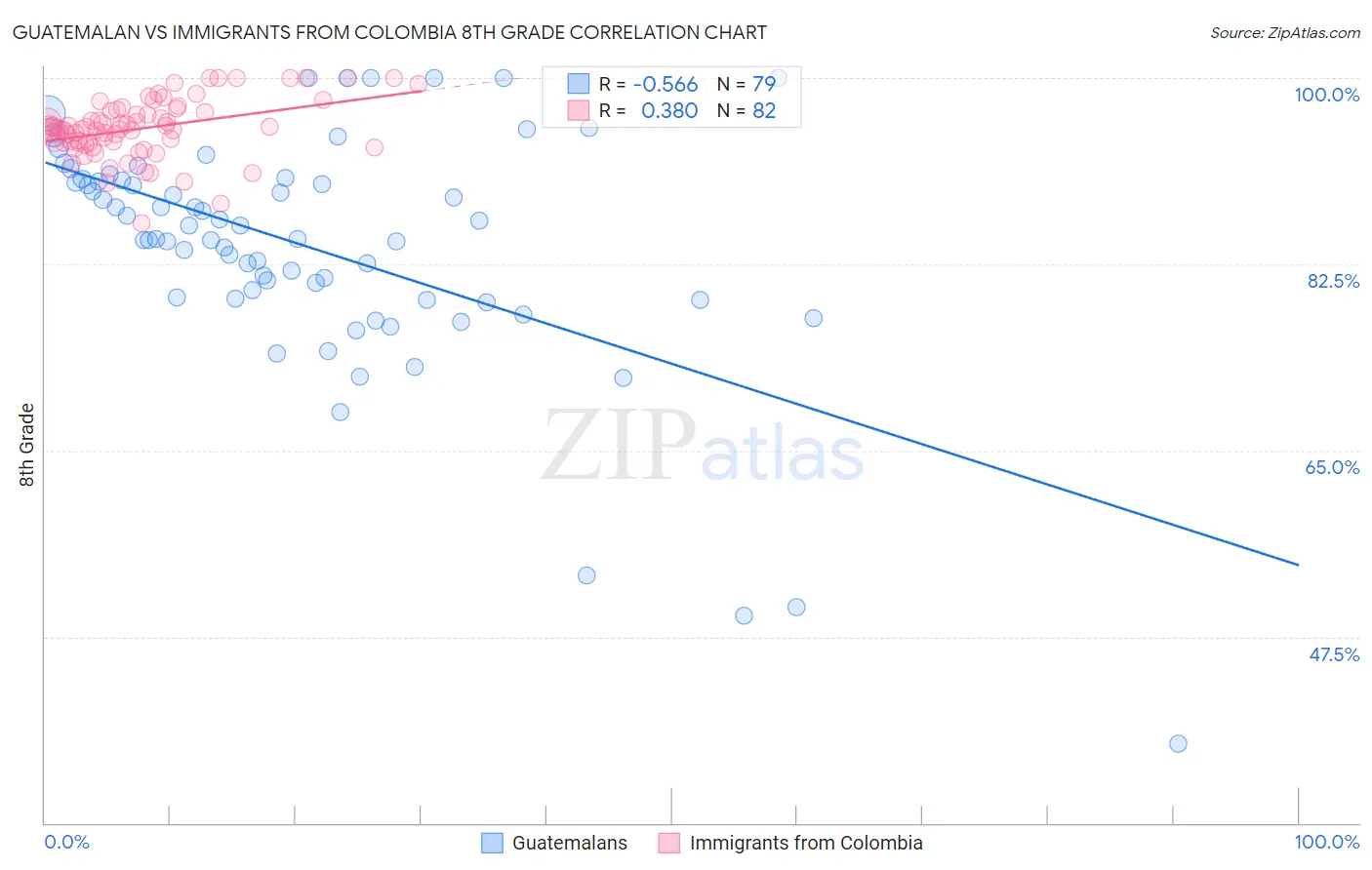 Guatemalan vs Immigrants from Colombia 8th Grade Correlation Chart