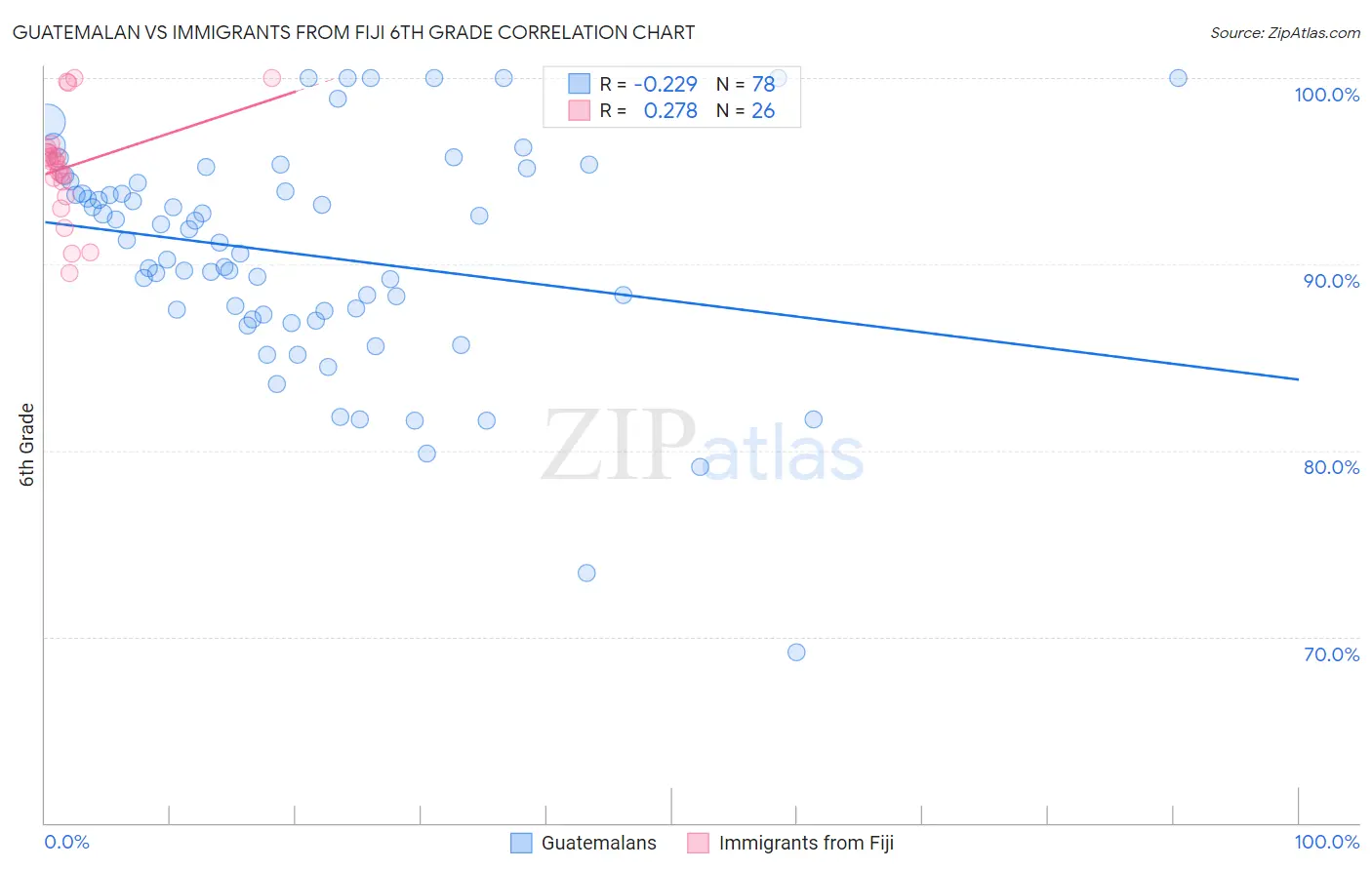 Guatemalan vs Immigrants from Fiji 6th Grade Correlation Chart