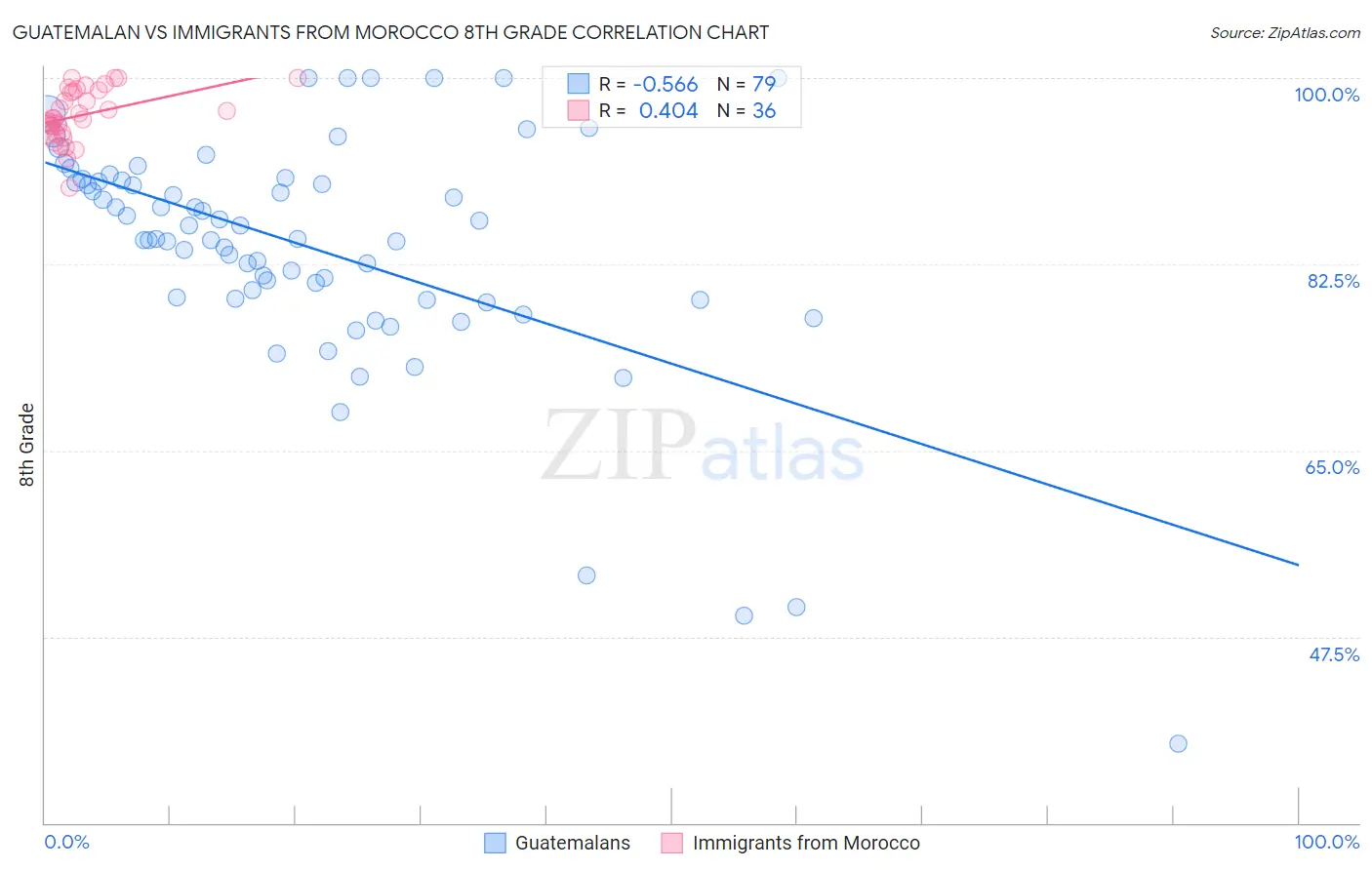 Guatemalan vs Immigrants from Morocco 8th Grade Correlation Chart