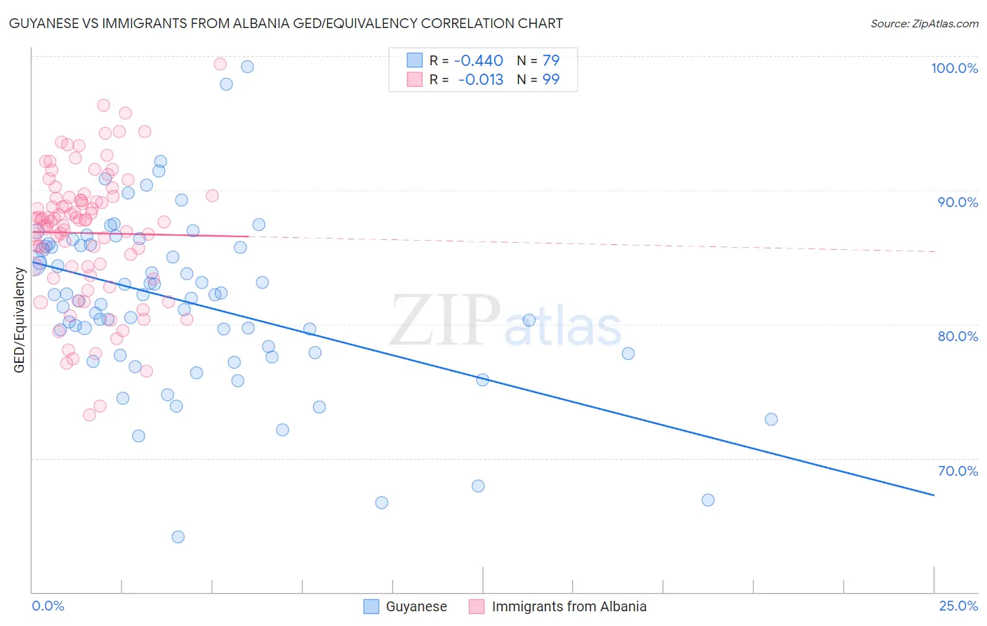 Guyanese vs Immigrants from Albania GED/Equivalency Correlation Chart