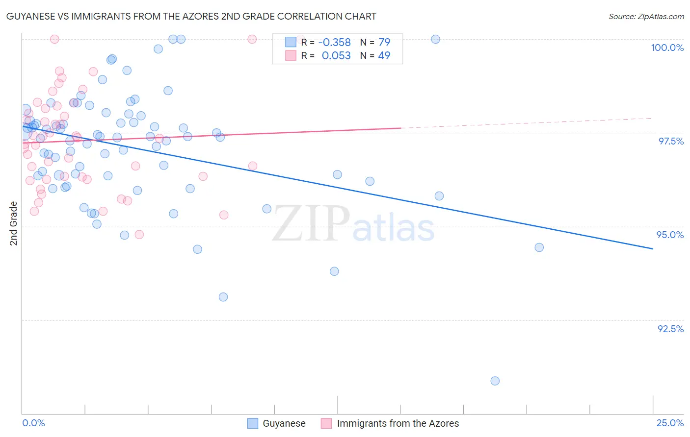Guyanese vs Immigrants from the Azores 2nd Grade Correlation Chart