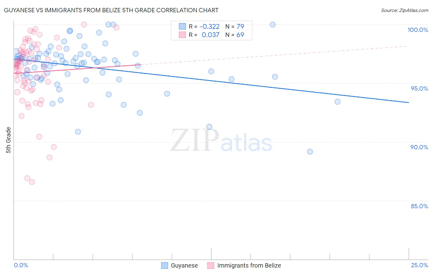 Guyanese vs Immigrants from Belize 5th Grade Correlation Chart