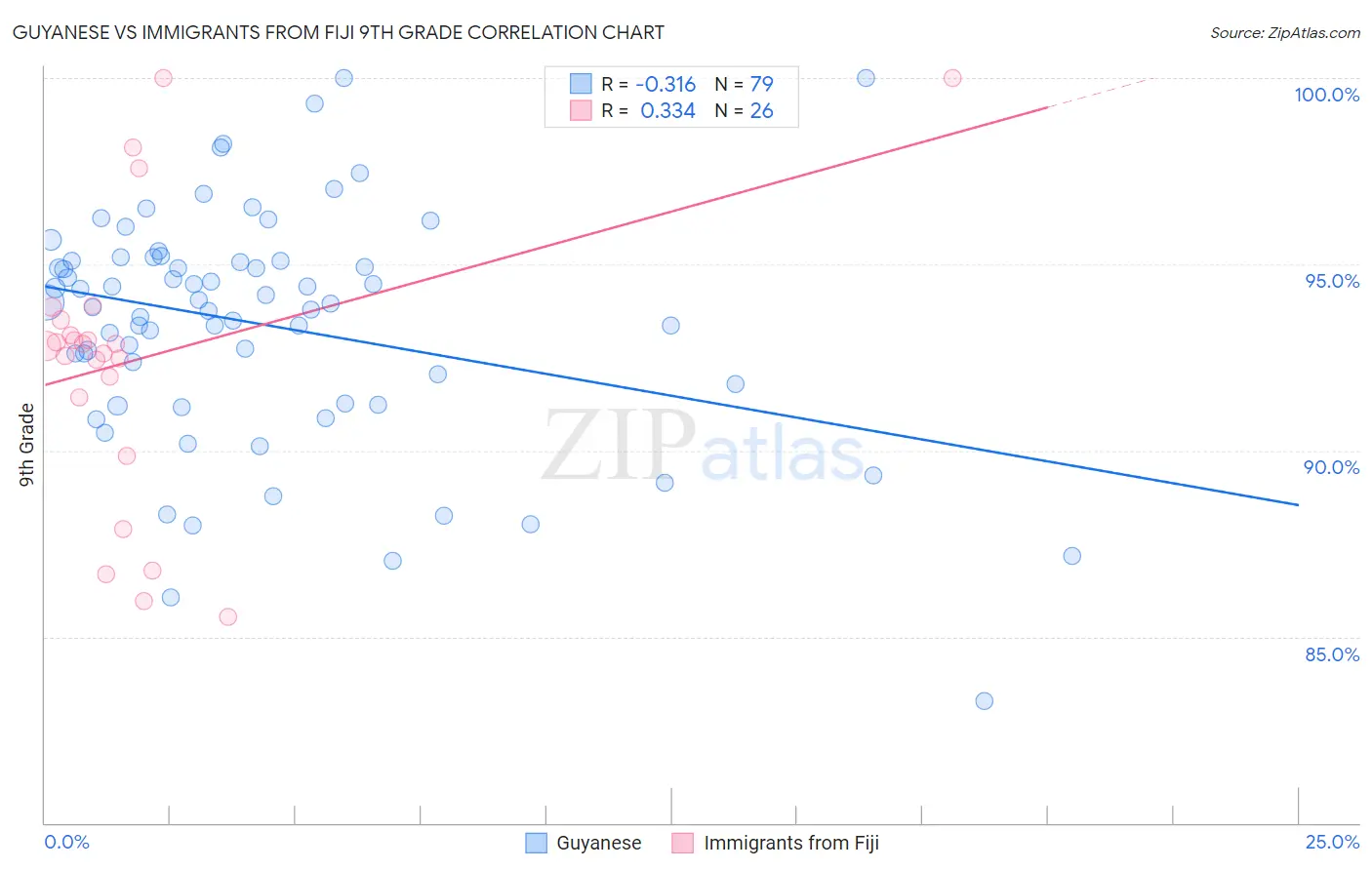 Guyanese vs Immigrants from Fiji 9th Grade Correlation Chart