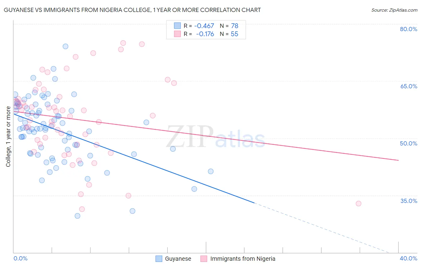 Guyanese vs Immigrants from Nigeria College, 1 year or more Correlation Chart